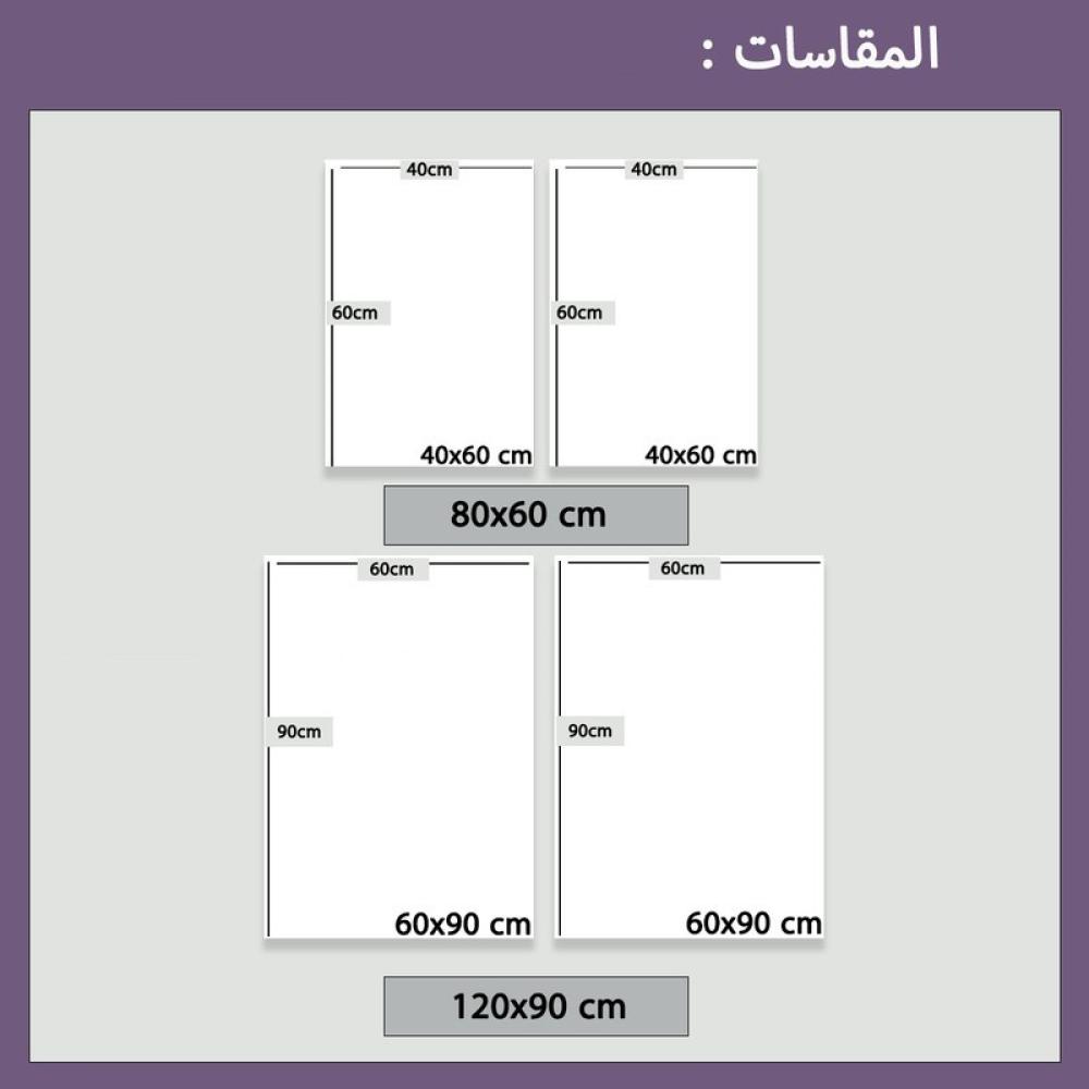 - المقاس الثاني: 120×90 سم (كل قطعة 60×90 سم)