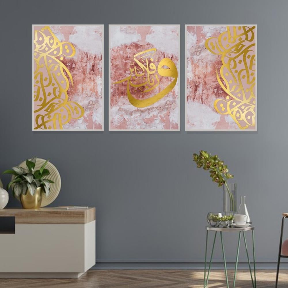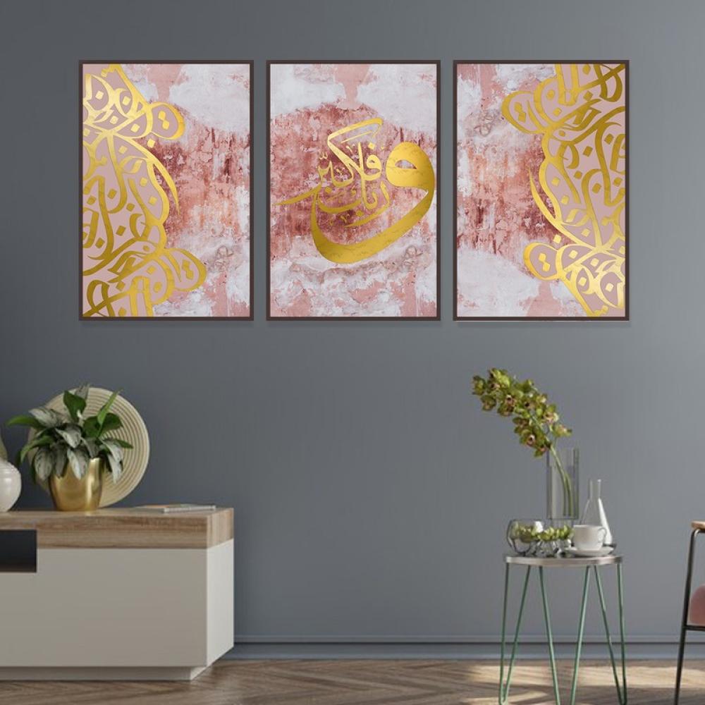 لوحة قماشية ثلاث قطع اسلامية بتصميم وربك فكبر