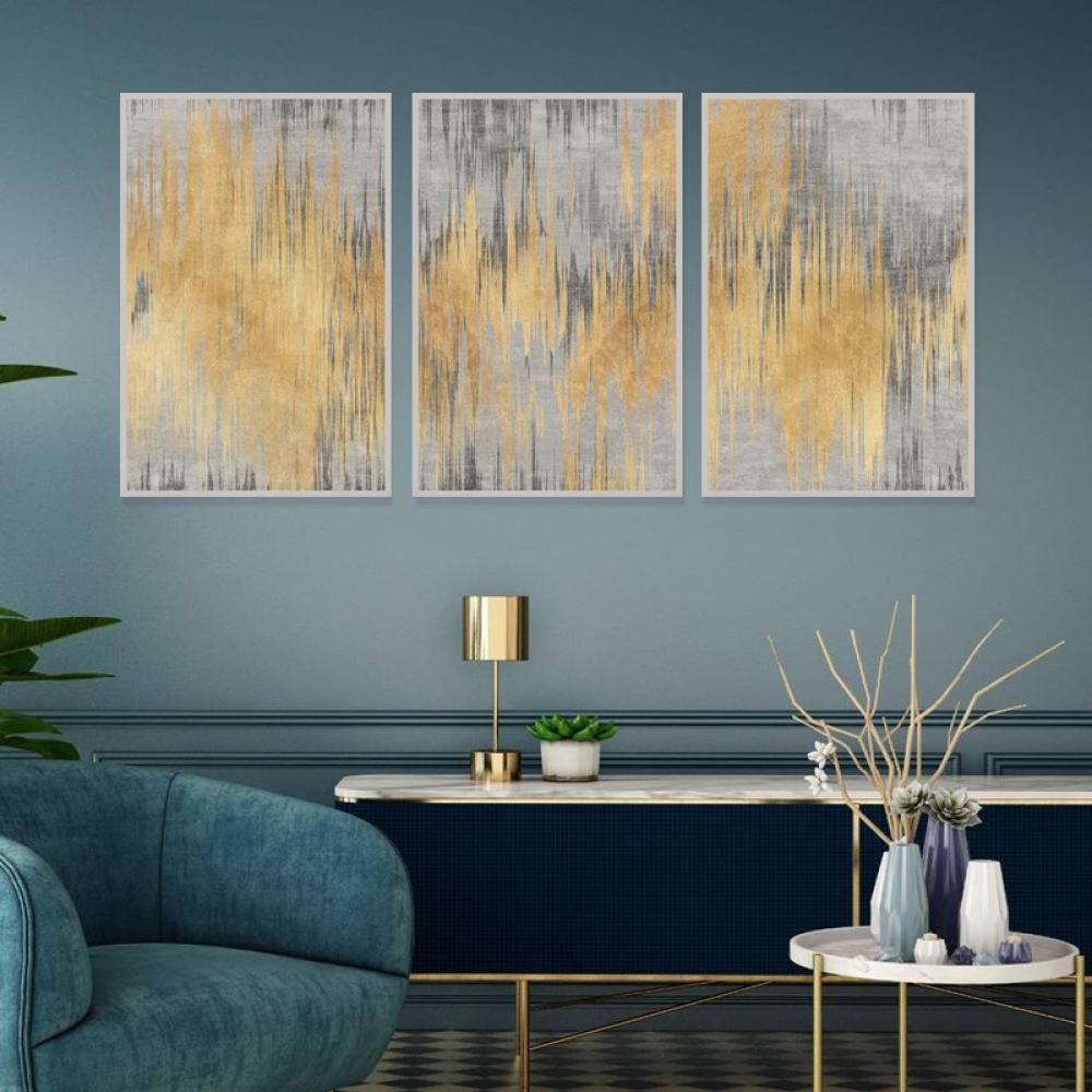 لوحة قماشية ثلاث قطع بتصميم الفن الهندسي و التجريدي
