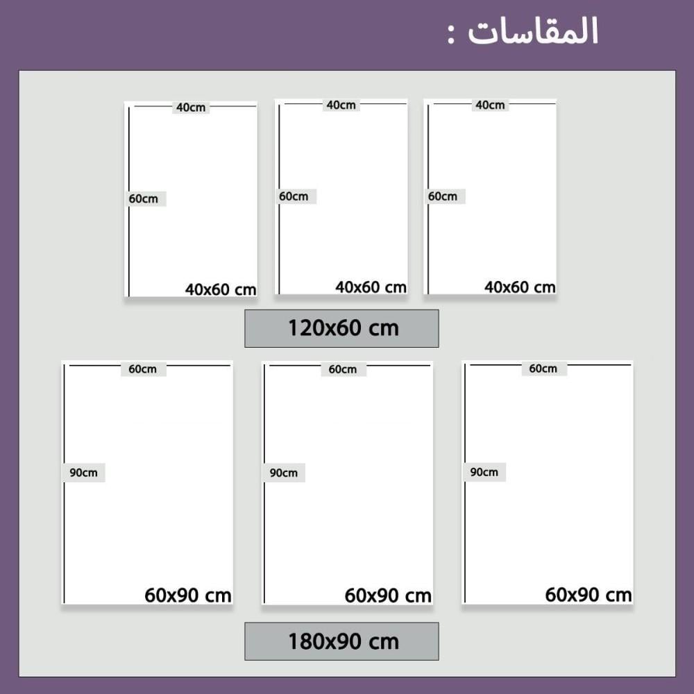 • المقاس الأول : ١٢٠ب٦٠ سم ( ٤٠ب٦٠ سم مقاس كل قطعة ).