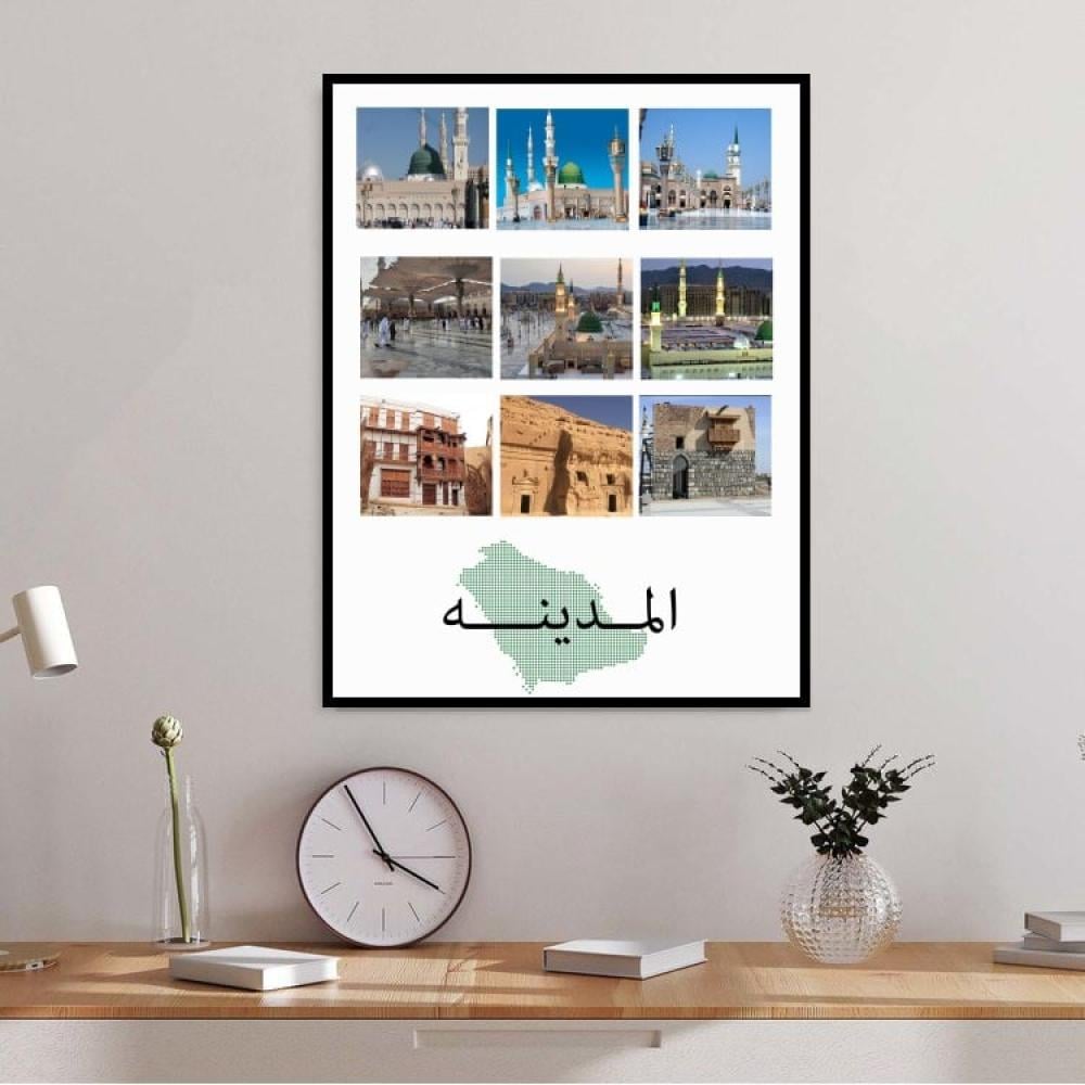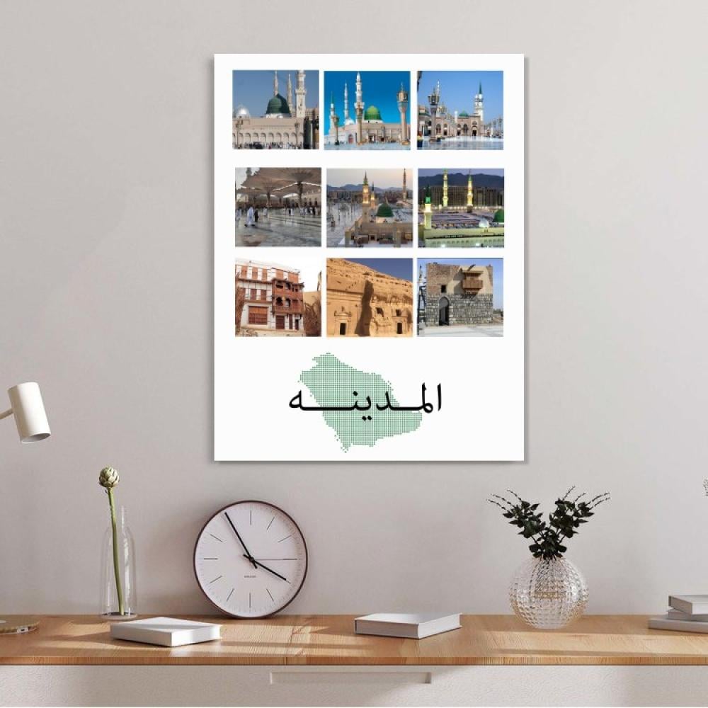 لوحة لمعالم المدينة المنورة, إذا كنت تبحث عن لمسة روحانية تملأ أركان منزلك بالسكون والجمال فإن لوحة معالم المدينة المنورة من "قصة الفن" تمنحك تلك الأجواء الإيمانية العذبة في كل زاوية، بتصميم عصري أنيق، يجمع بين الفن والهوية، تُجسّد هذه اللوحة سحر المدينة ومكانتها العظيمة في قلوب الجميع.