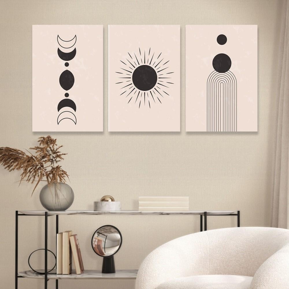 • تقسيم اللوحة إلى ثلاث قطع يخلق تأثيراً بصرياً متناسقاً يضفي عمقاً وحركة على الحائط.